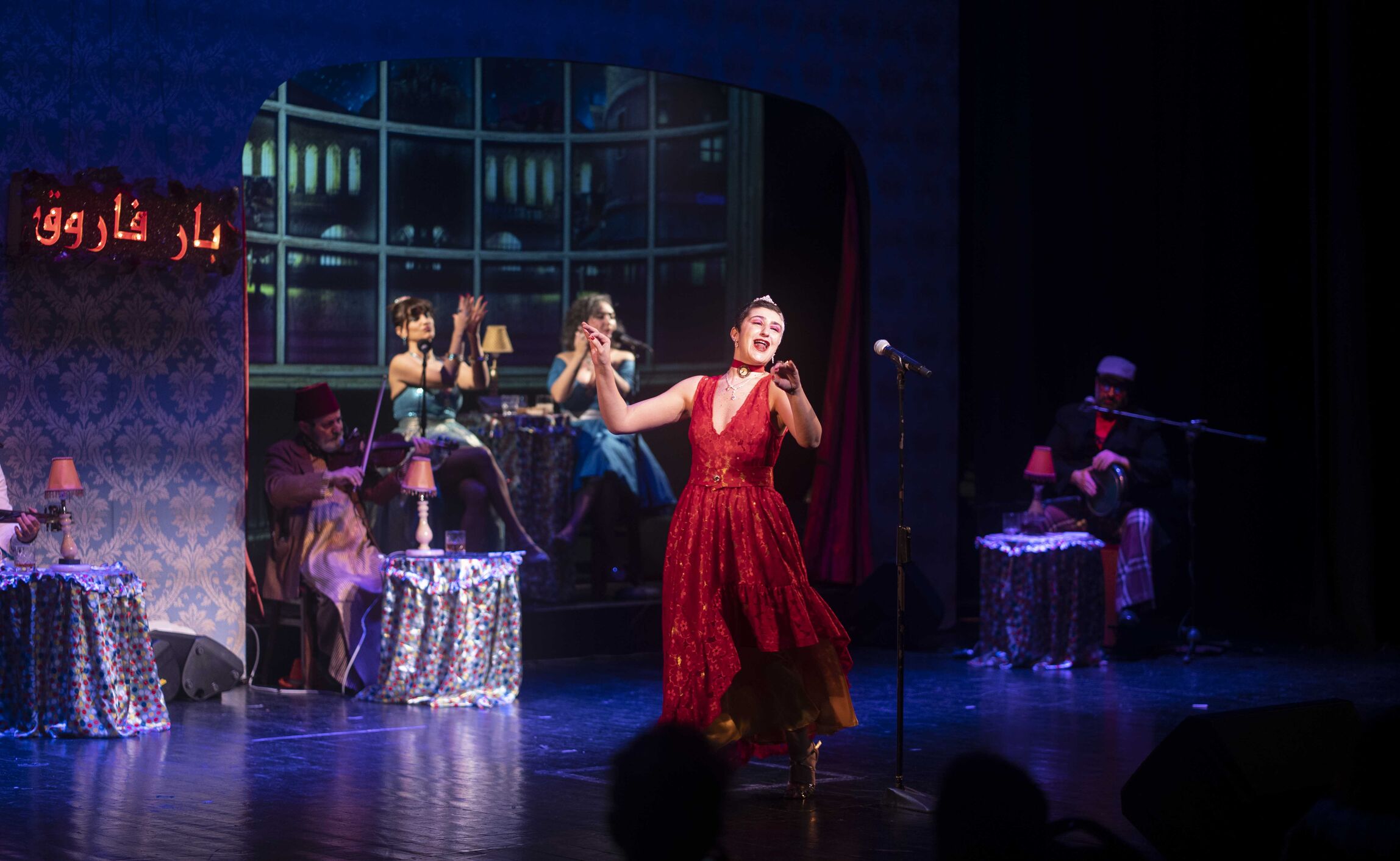 Bar Farouk revives the artistic scene of Beirut from the 30s to the 70s, from popular theatre to cabaret music and dance, through the works of icons who have marked the art scene before the civil war, such as Chouchou, Sabah, Ferial Karim and the poet Omar El Zeenni, amongst many.