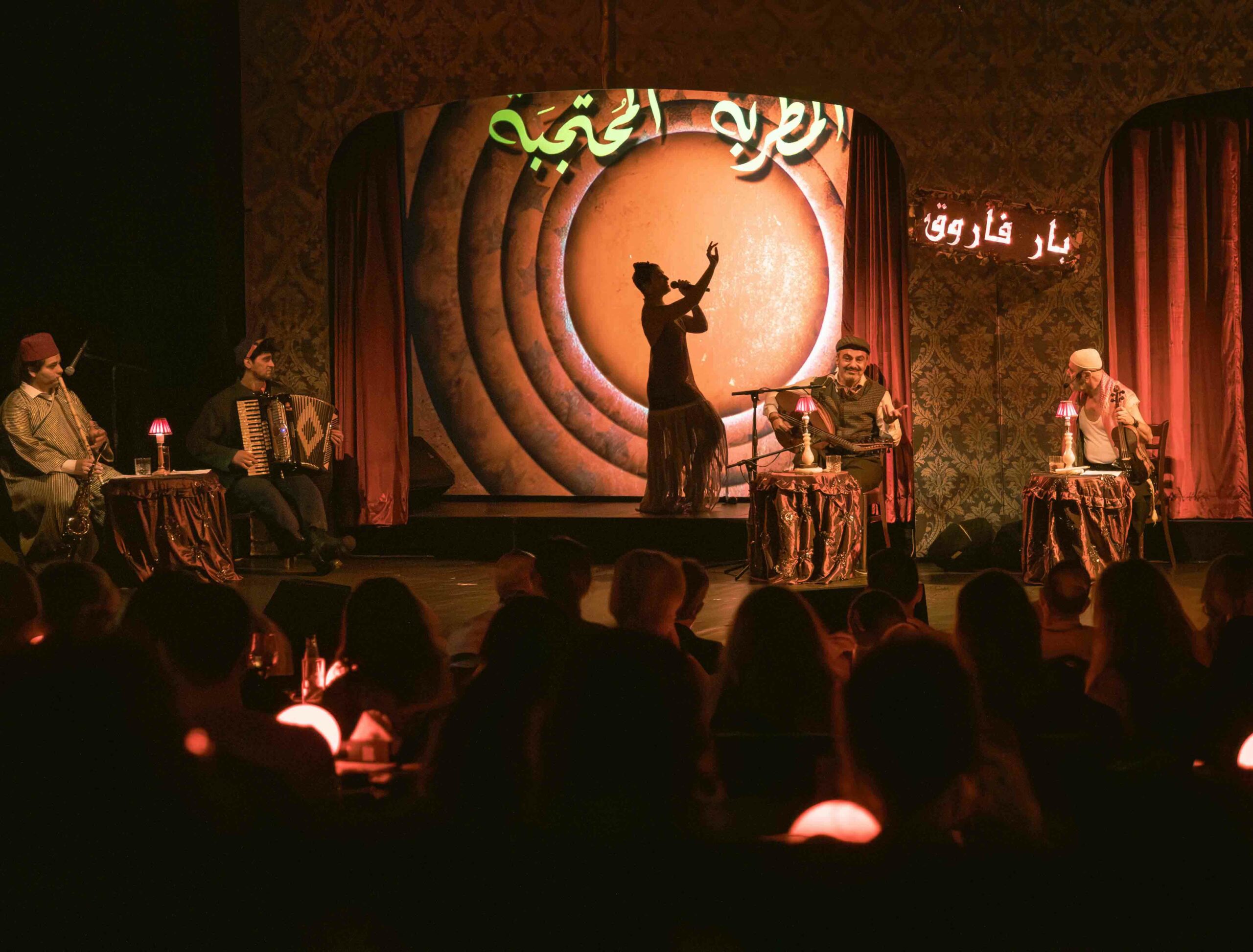 Bar Farouk revives the artistic scene of Beirut from the 30s to the 70s, from popular theatre to cabaret music and dance, through the works of icons who have marked the art scene before the civil war, such as Chouchou, Sabah, Ferial Karim and the poet Omar El Zeenni, amongst many.