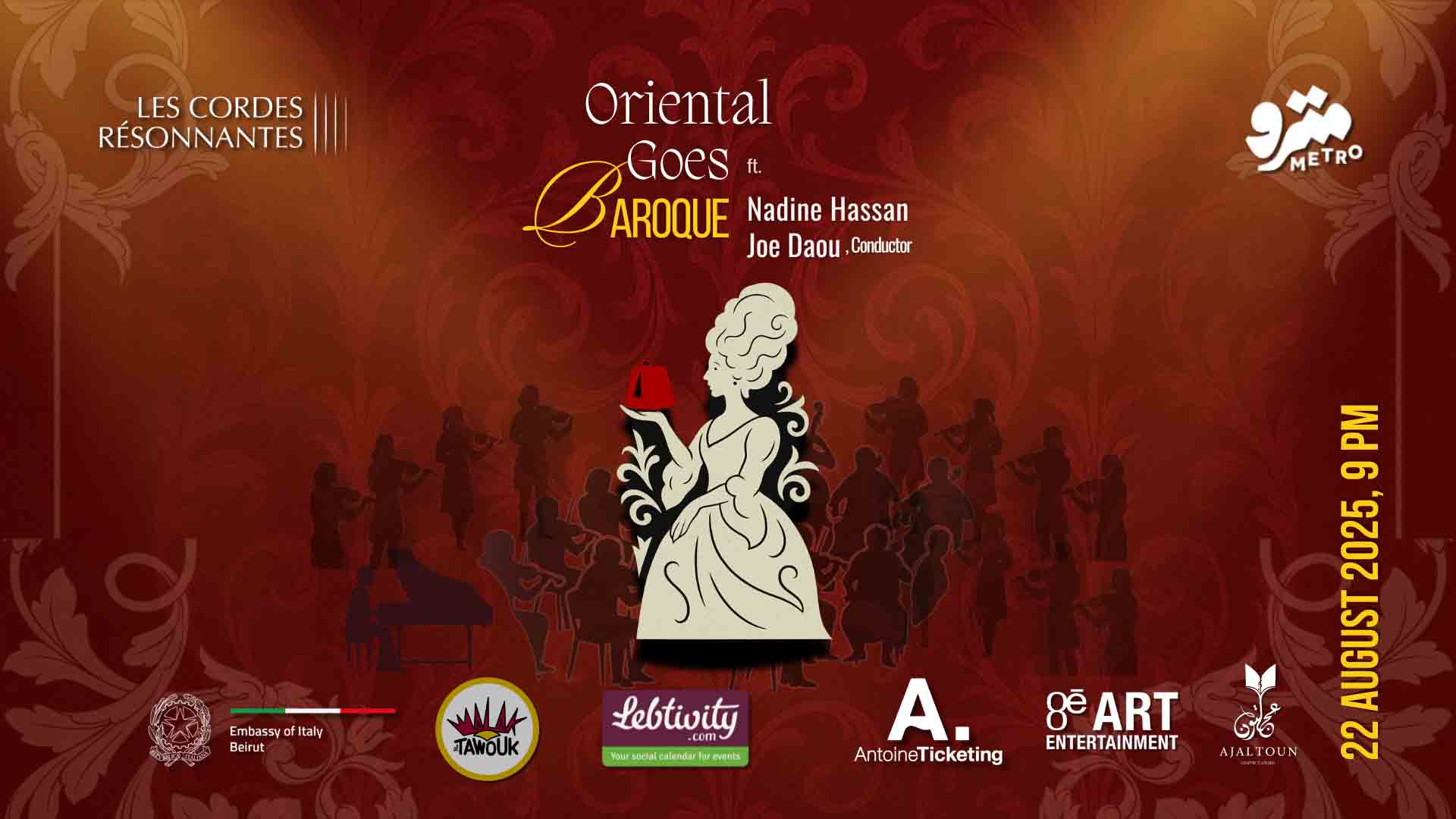 From the timeless elegance of Italian Baroque to the emotional depth of Levantine melodies, this project reimagines iconic songs by Fairuz, Abdel Wahab, and more — through the vibrant lens of Baroque style.In collaboration with the Italian Embassy in Lebanon