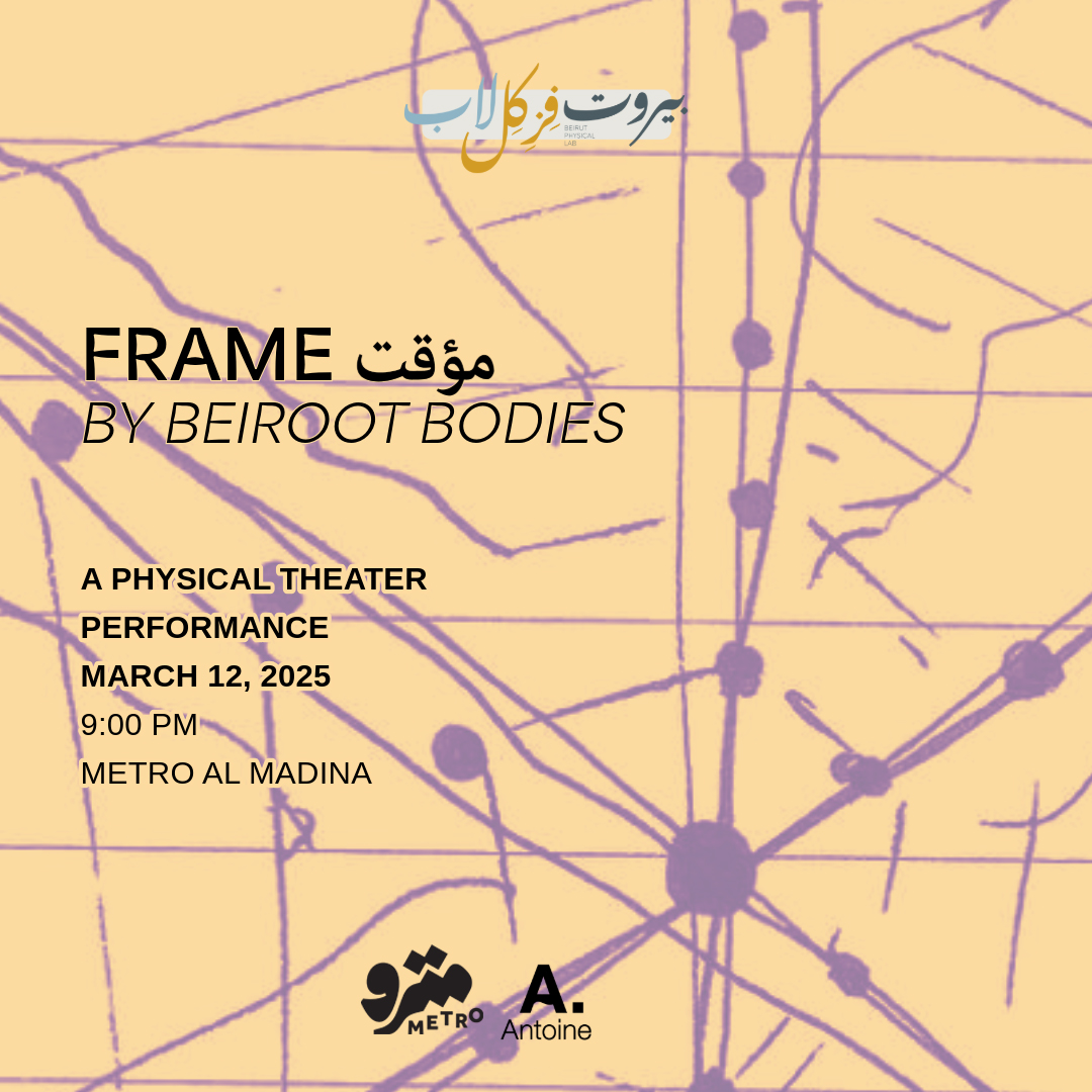 Frame مؤقت by BEIROOT BODIES Live at Metro A contemporary dance and physical theatre performance This year’s performance is a unique convergence of talent, featuring participants from all three editions of BeiRoot Bodies. Through Frame, each artist will present scenes inspired by their personal stories and everyday life in Lebanon. These pieces delve into deeply personal and […]