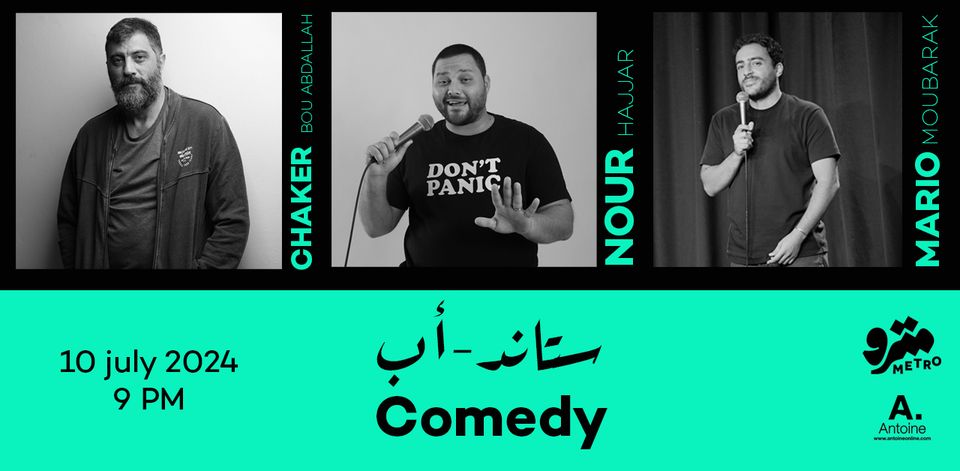 Stand-up Comedy night with Chaker Bou AbdallahNour HajjarMario Moubarak Wednesday 10 July 2024Doors open at 8:15 PMEvent starts at 9 PM ستاند أب كوميدي معشاكر بو عبد اللهنور حجّارماريو مبارك الأربعاء ١٠ تموز ٢٠٢٤تفتح الأبواب ٨:١٥يبدأ العرض ٩ Tickets on sale at Metro Al Madina (Ticketing booth & website), Librairie Antoine branches or through Antoine […]